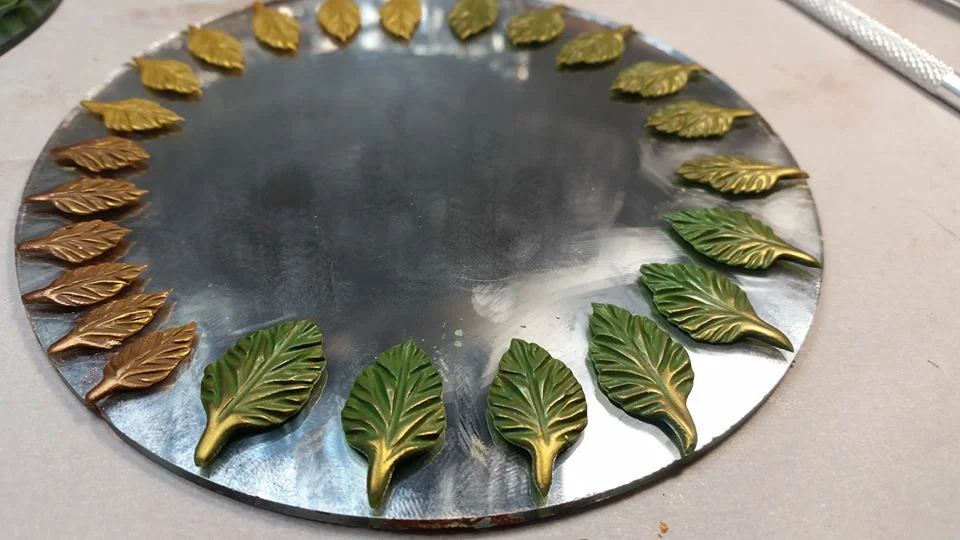 Fold the stem portion of each leaf over a small jump ring and press the clay over it firmly